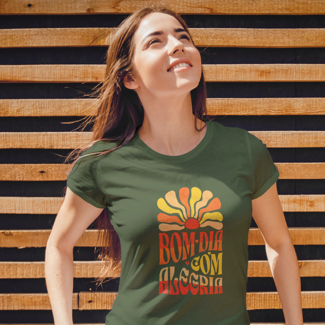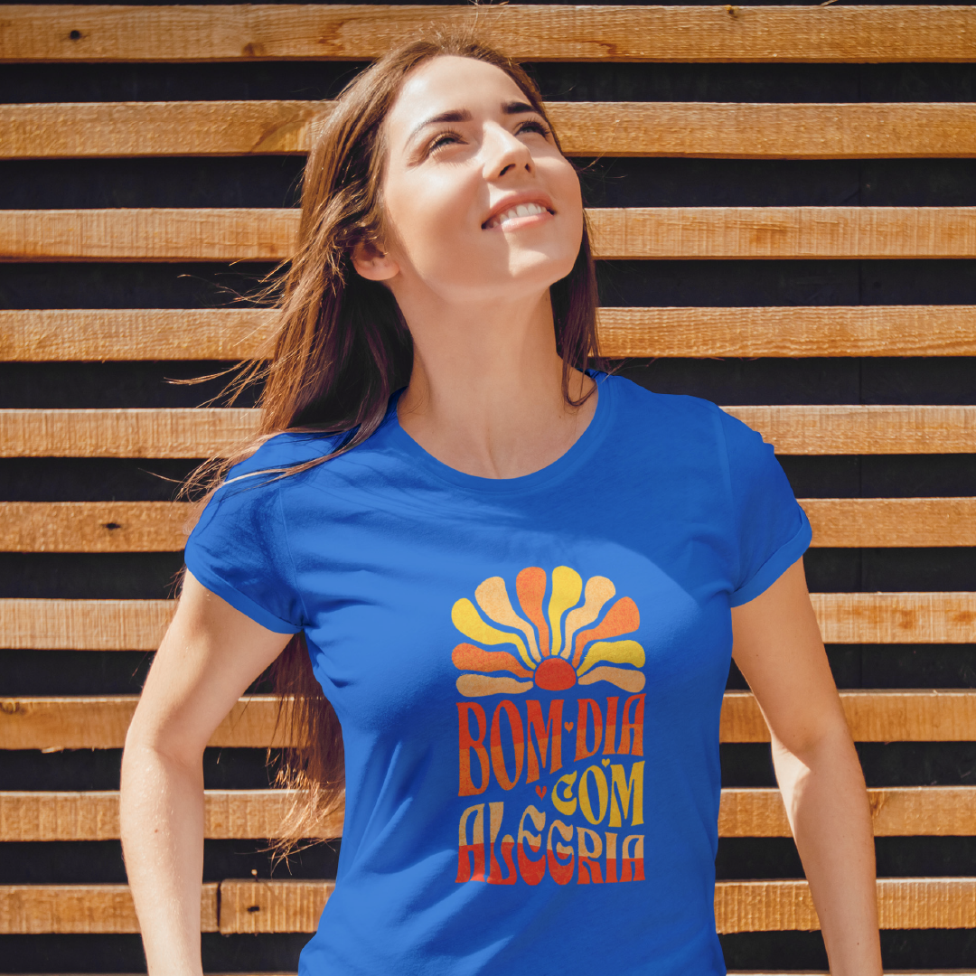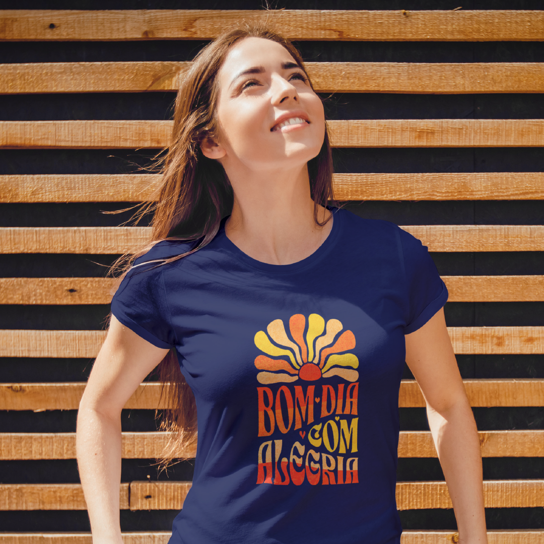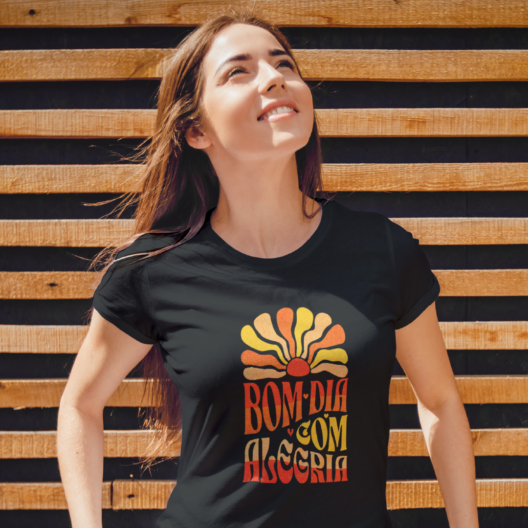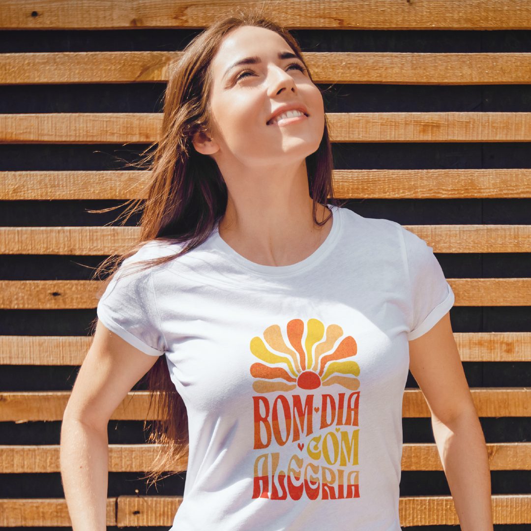 Comece o dia na frequência alta! A estampa Bom Dia com Alegria é um lembrete de que a vida sorri pra quem sorri de volta. Com um sol radiante como seu cúmplice, essa vibe espalha leveza, bom humor e energia positiva. Porque quem brilha por dentro ilumina tudo ao redor! Ah! Quando não estiver sol, então, seja o sol. Sacou?
