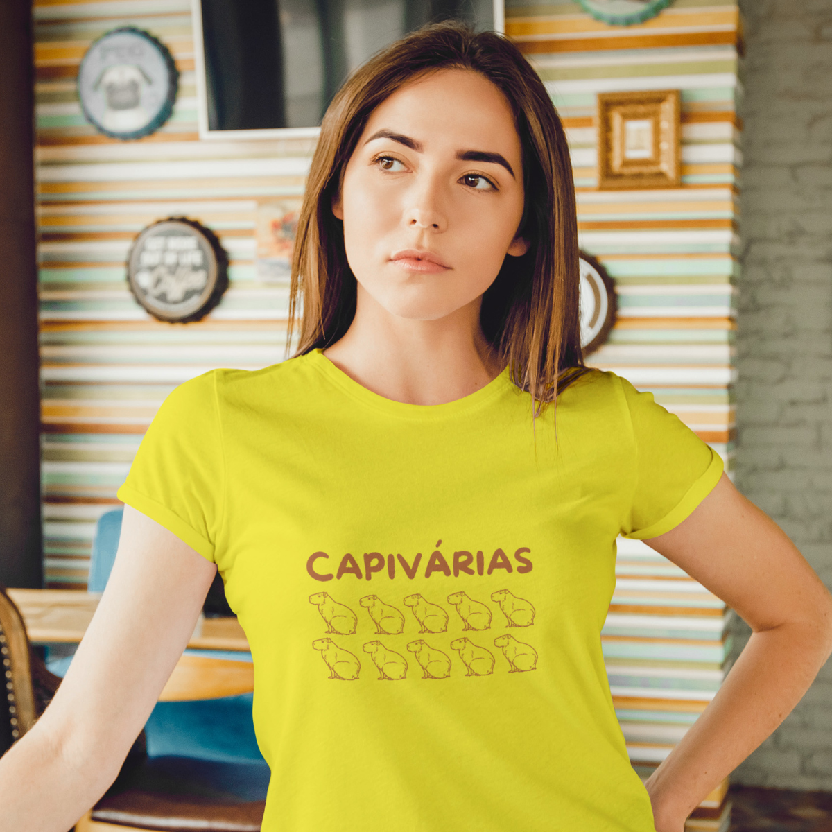 Capivárias traz o espírito sereno e divertido das capivaras: juntas, fortes e leves. Uma estampa que inspira companheirismo, autenticidade e a beleza de viver em grupo, sempre no fluxo tranquilo da vida.