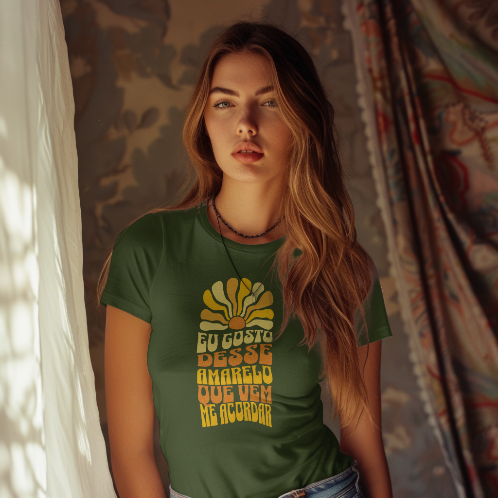 Essa estampa é pura energia solar! Com a frase "eu gosto desse amarelo que vem me acordar", retirada da música fofíssima "Cores", de Marie Gabriella. Assim como no início da música, essa estampa celebra o despertar da manhã com entusiasmo. O sol nos abraça, recarrega e nos convida a viver com alegria e leveza. Perfeita para quem aprecia o calor que desperta corpo, alma e vibração.