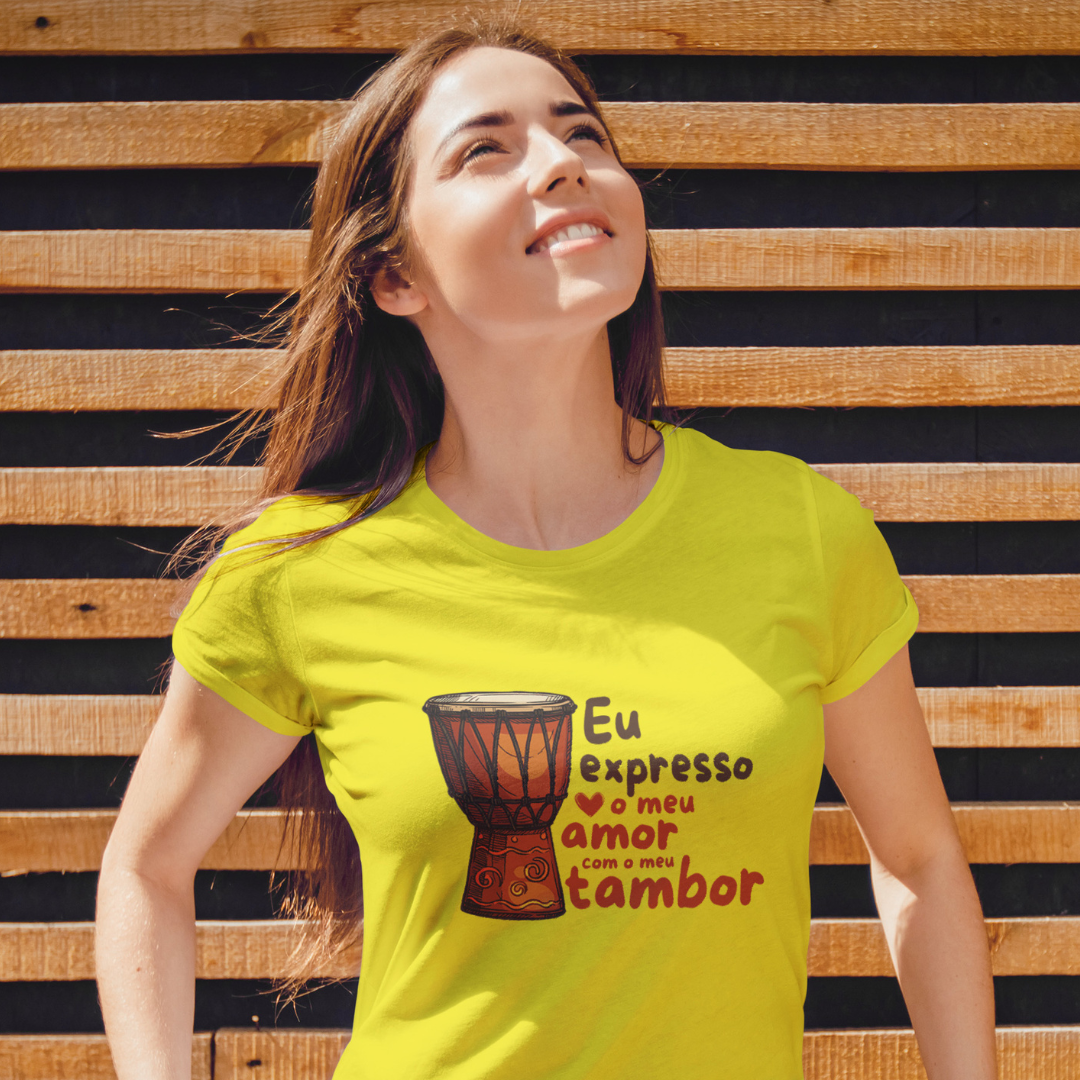 Batidas que falam, vibrações que curam! Se sua alma dança ao som do tambor, essa estampa é pra você! "Eu expresso o meu amor com o meu tambor" – porque sentimento bom a gente não esconde, a gente toca, sente e deixa ecoar! Bora ressoar essa energia por aí?