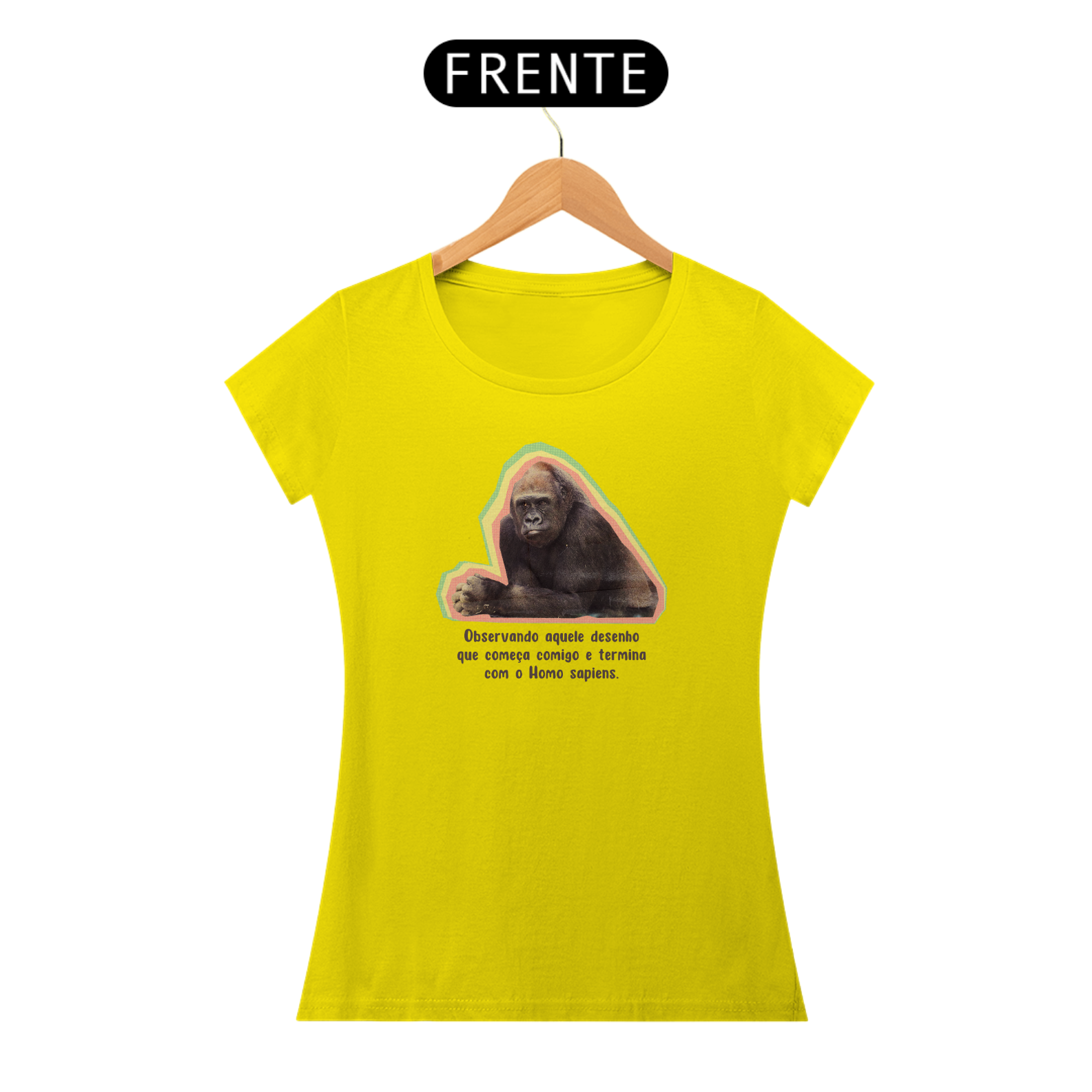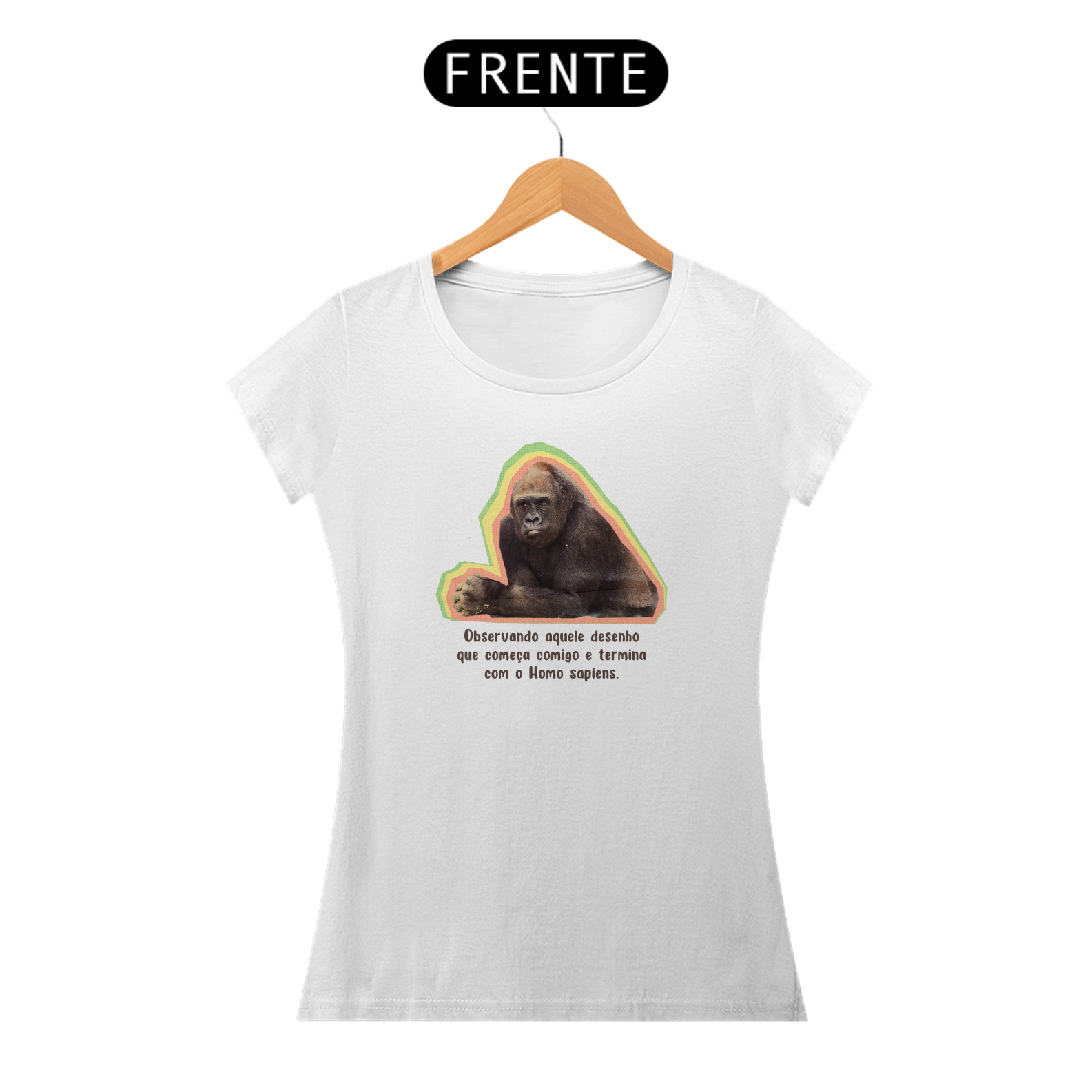 Esta estampa traz um macaco intrigado observando a clássica ilustração da "evolução humana". Com humor, provoca a ideia equivocada de que a evolução é uma linha reta e que o macaco foi "promovido" a Homo sapiens. É um lembrete divertido: evolução não é fila indiana, e o macaco nunca saiu de cena — ele só vive a própria história!