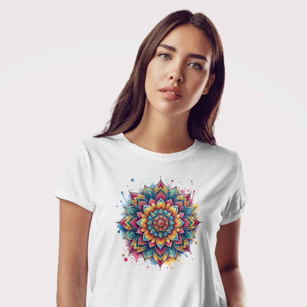 Esta estampa com mandala colorida em aquarela carrega a energia mística de equilíbrio e harmonia. Símbolo de conexão com o universo, a mandala inspira autoconhecimento e paz interior. Perfeita para quem busca elevar a vibração e usar a arte como um portal de expansão e espiritualidade.