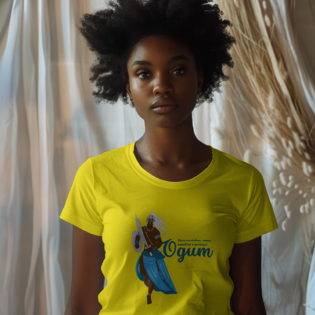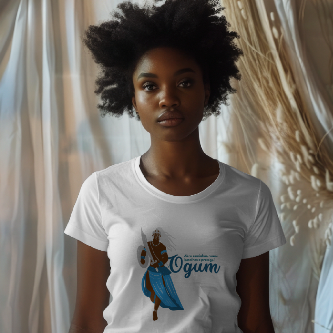 Ogum, o valente guerreiro, abre caminhos e vence batalhas com sua força e determinação. Protetor das jornadas, simboliza coragem, justiça e evolução. Esta estampa celebra sua energia poderosa, inspirando ação e superação para enfrentar desafios com honra e confiança.
