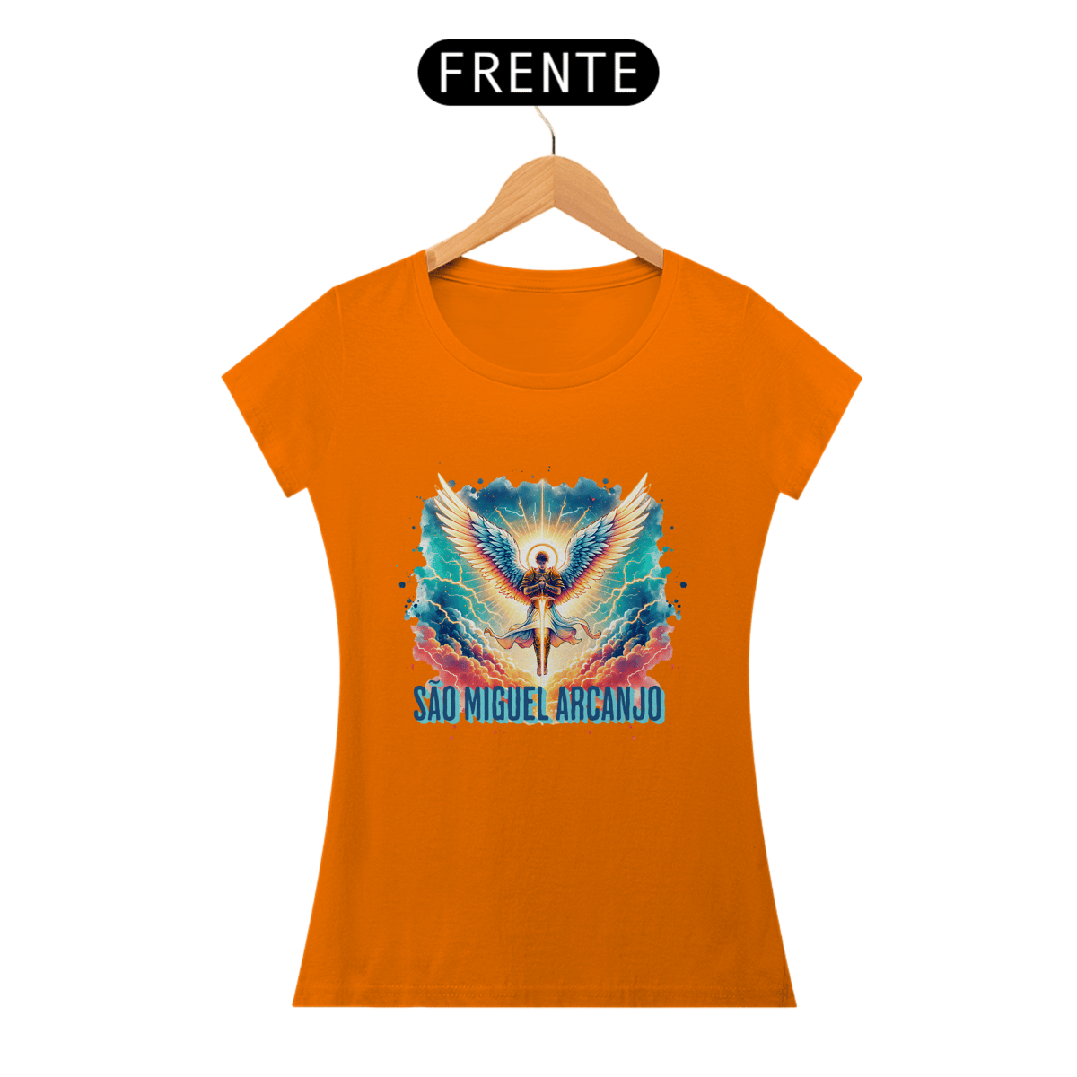 Arcanjo São Miguel, o guerreiro celestial, emana força, coragem e proteção divina. Com sua espada flamejante, afasta todo mal e ilumina o caminho dos justos. Guardião das batalhas espirituais, ele representa a justiça e a fé inabalável. Vestir esta estampa é carregar sua energia poderosa, um escudo contra as adversidades e um símbolo de luz e vitória.