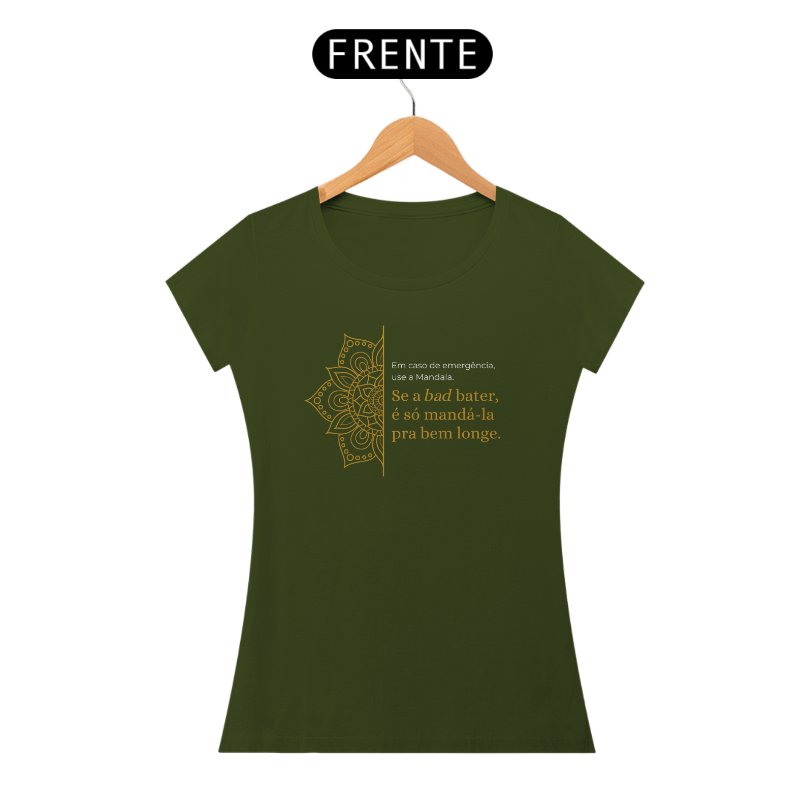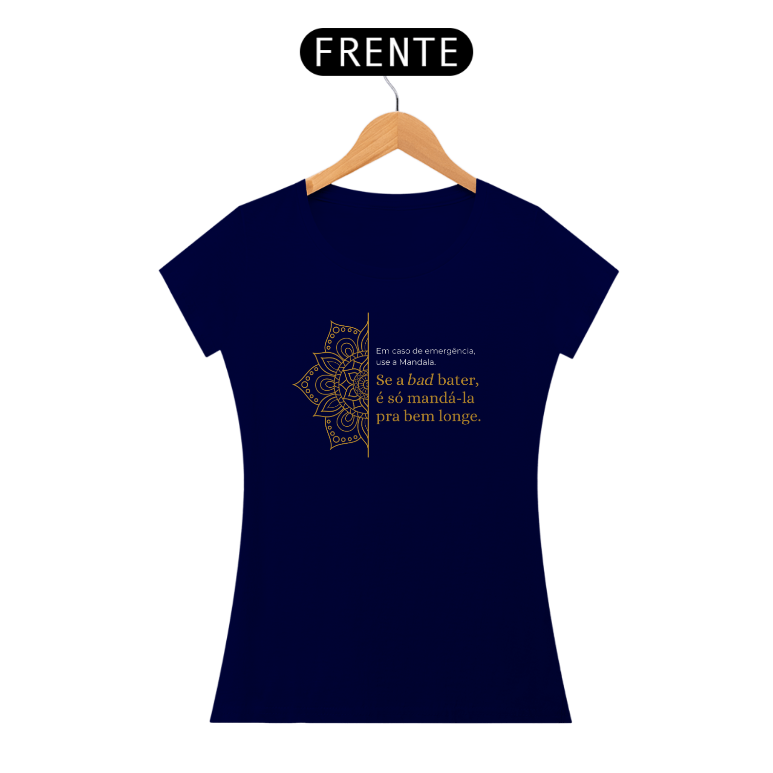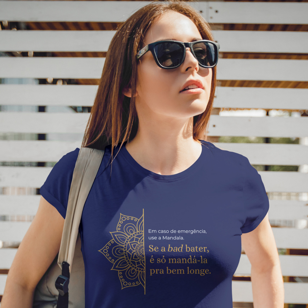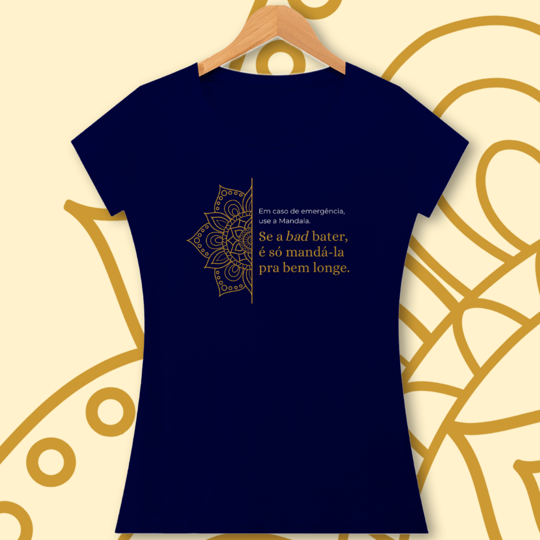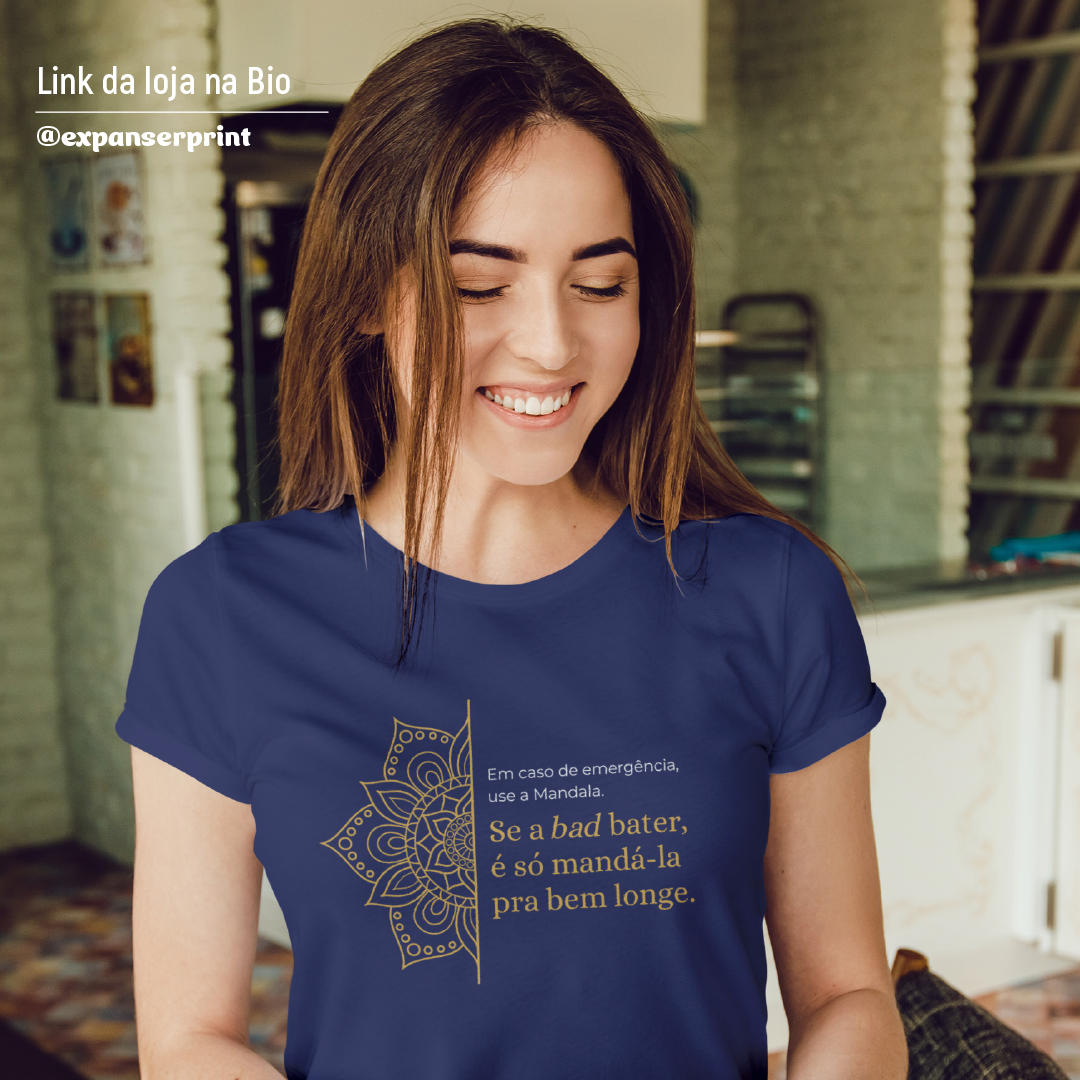 A estampa "Em caso de emergência, use a mandala. Se a bad bater, é só mandá-la pra bem longe" traz leveza e bom humor para lidar com os desafios do dia a dia. Com sua energia harmonizadora, a Mandala simboliza equilíbrio e paz interior. É um lembrete divertido de que podemos transformar momentos difíceis com positividade e uma boa dose de descontração!