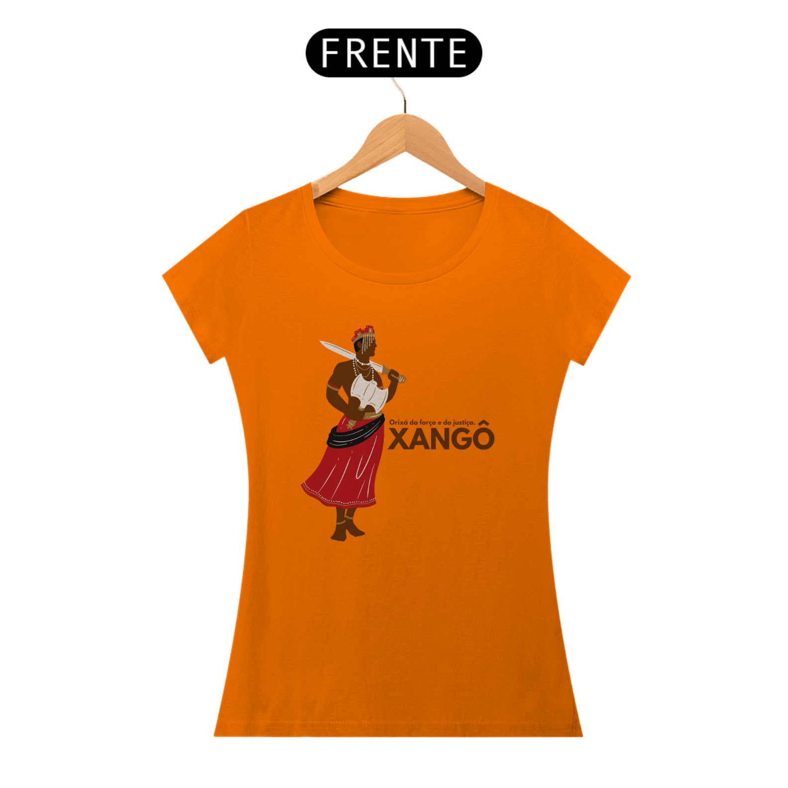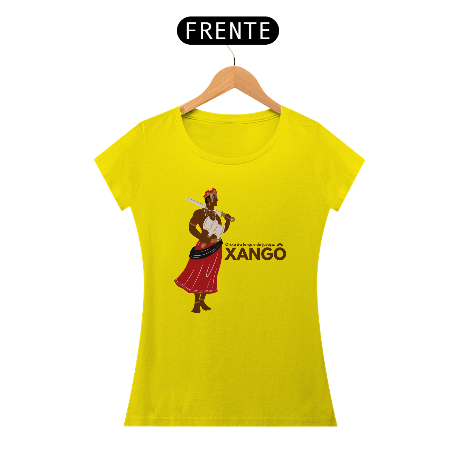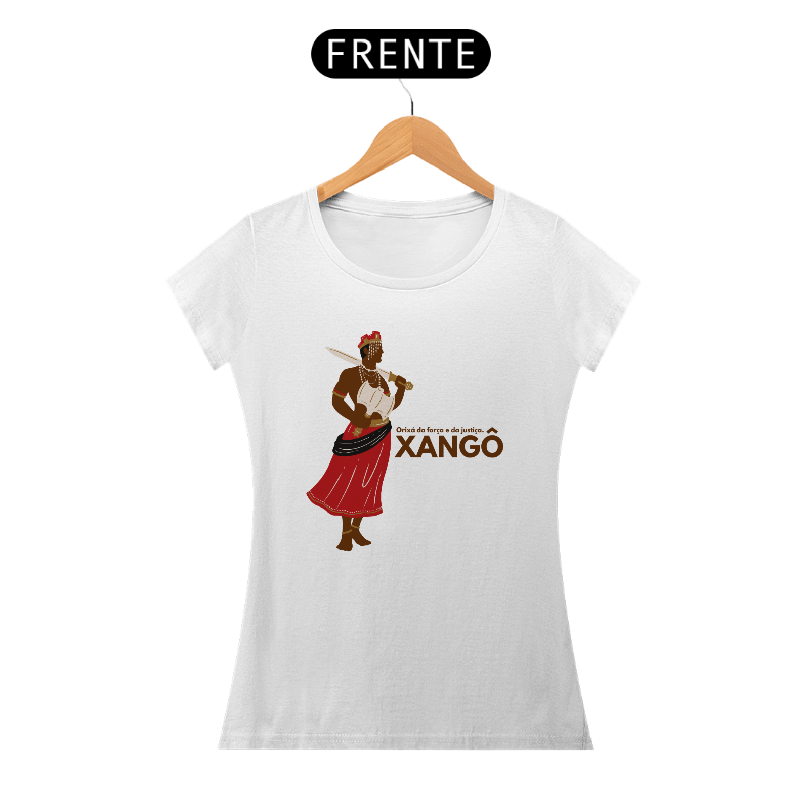 Xangô, o orixá da justiça, do fogo e dos raios. Sua força imponente e seu machado duplo simbolizam o equilíbrio e a lei. Homenageie a sabedoria e o poder de Xangô com essa estampa exclusiva. Kaô Kabecilê!