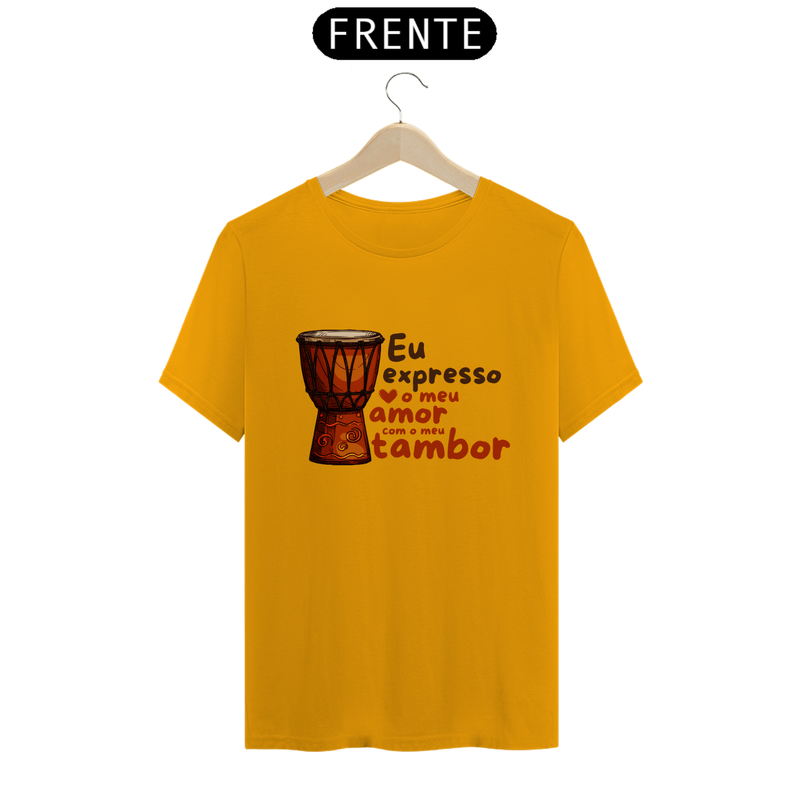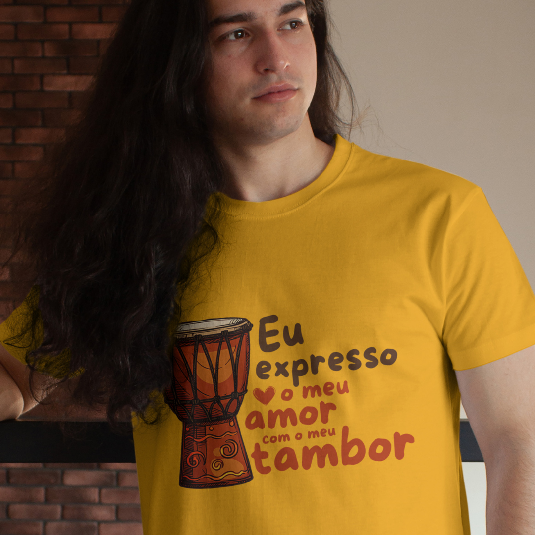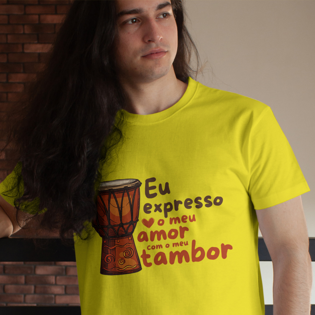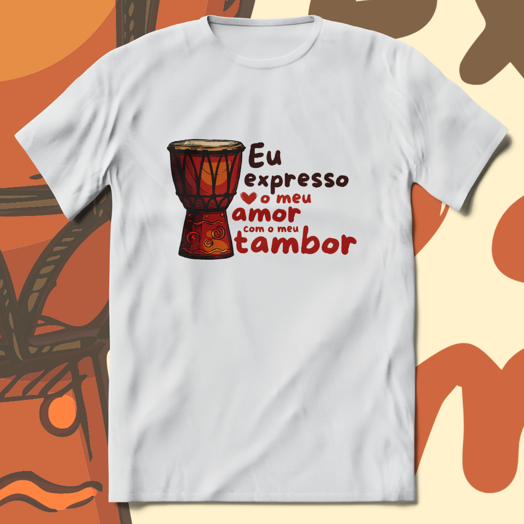 Batidas que falam, vibrações que curam! Se sua alma dança ao som do tambor, essa estampa é pra você! "Eu expresso o meu amor com o meu tambor" – porque sentimento bom a gente não esconde, a gente toca, sente e deixa ecoar! Bora ressoar essa energia por aí?