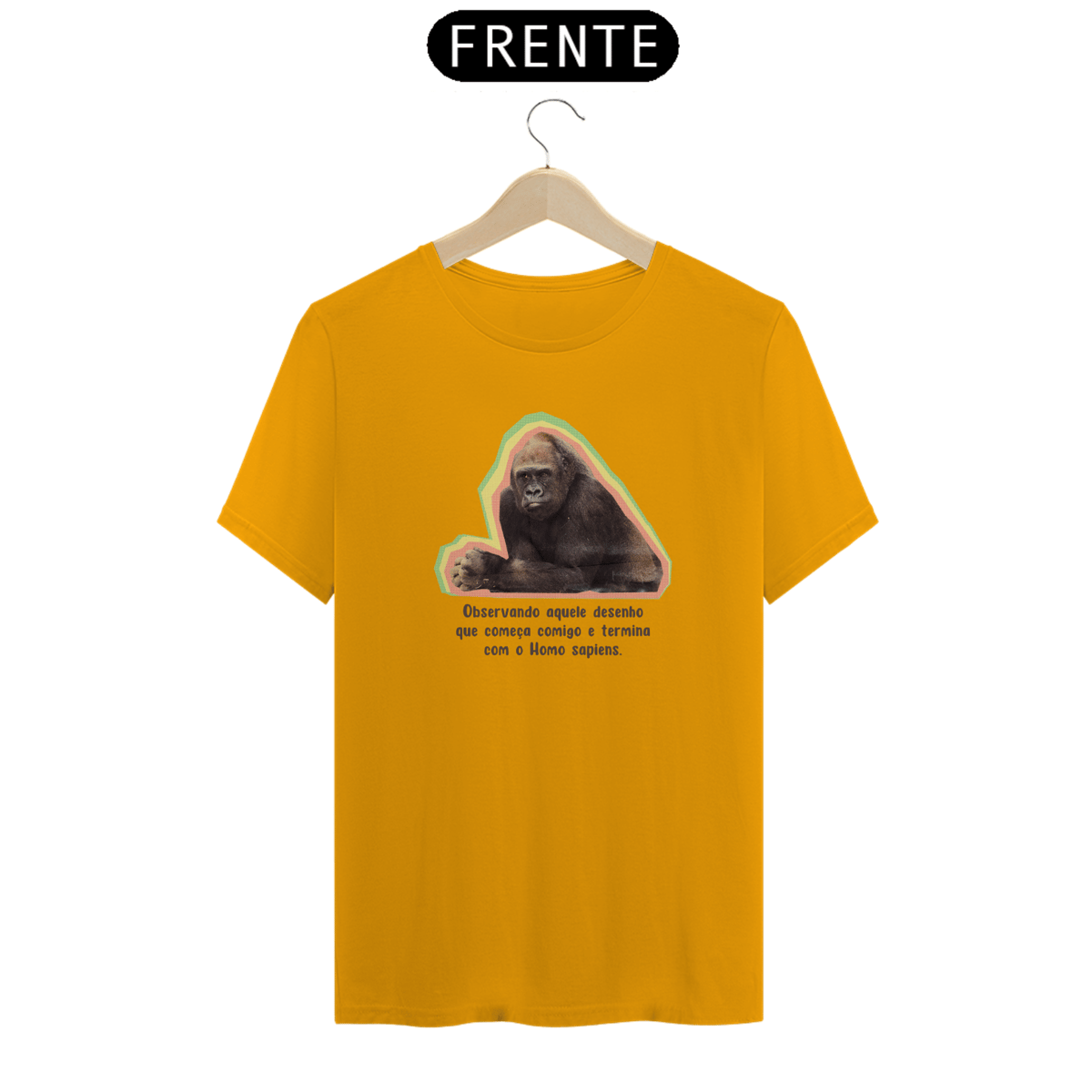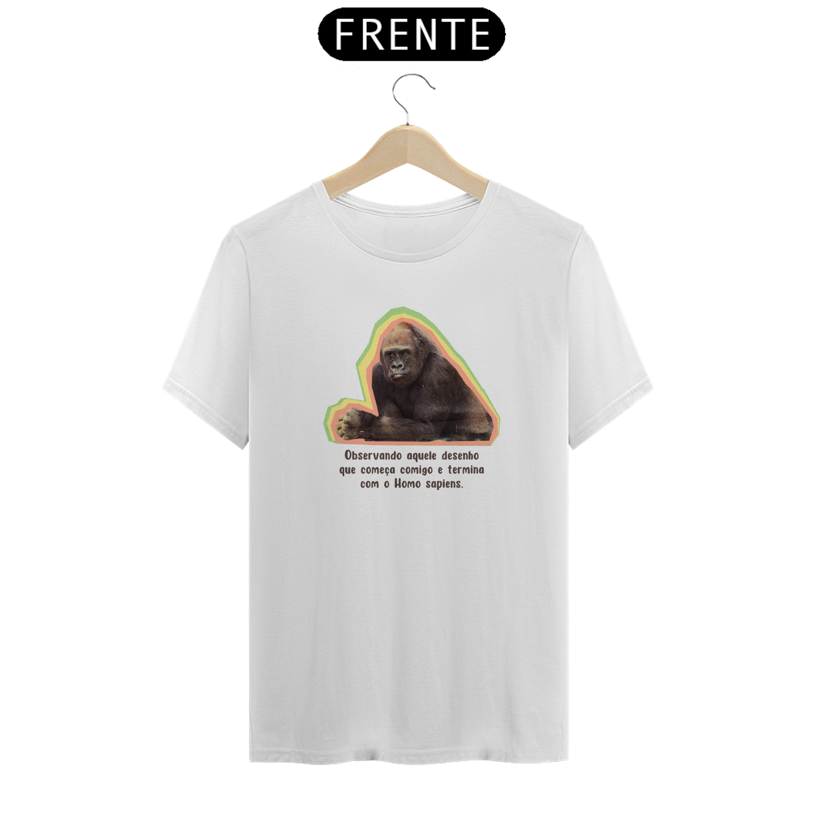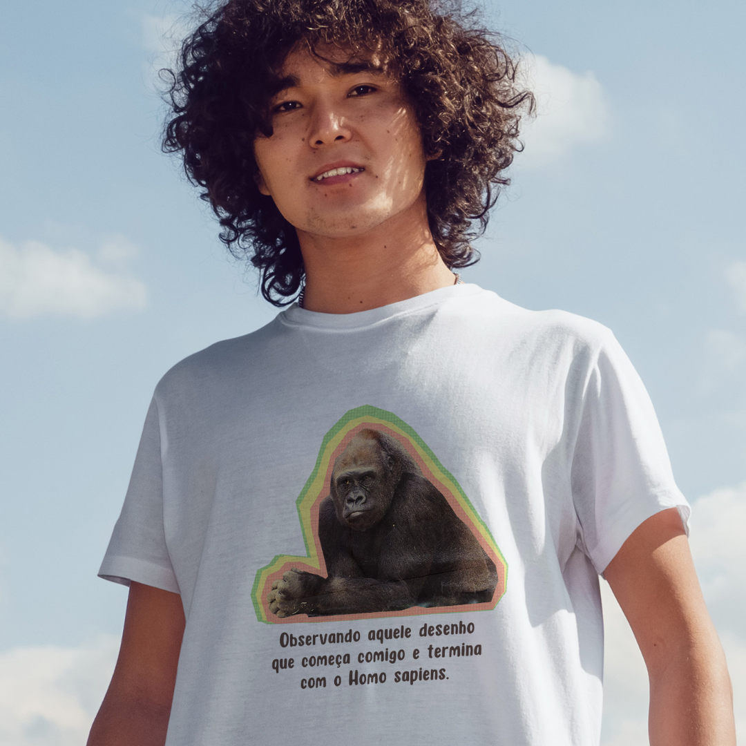 Esta estampa traz um macaco intrigado observando a clássica ilustração da "evolução humana". Com humor, provoca a ideia equivocada de que a evolução é uma linha reta e que o macaco foi "promovido" a Homo sapiens. É um lembrete divertido: evolução não é fila indiana, e o macaco nunca saiu de cena — ele só vive a própria história!