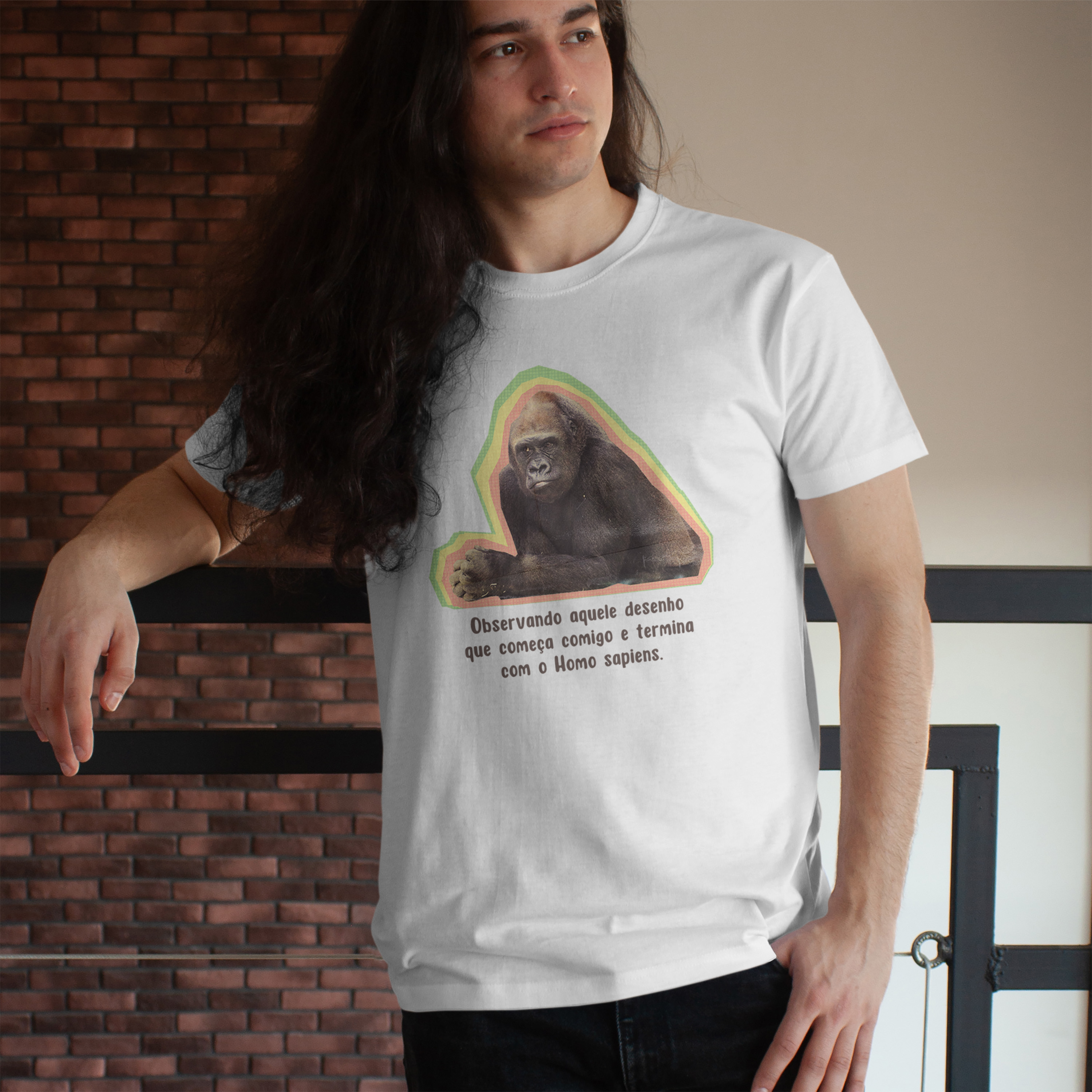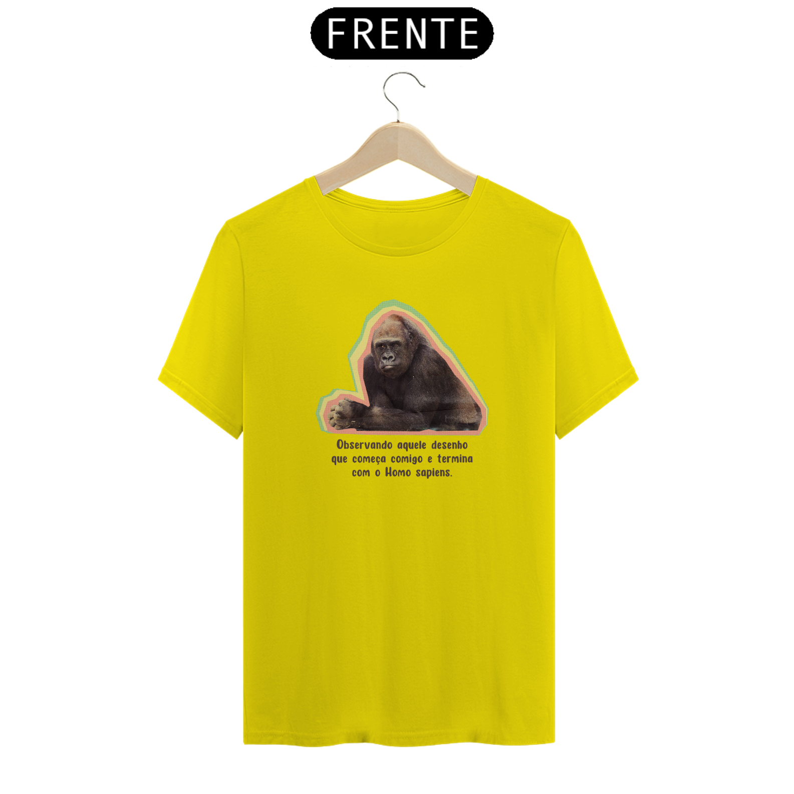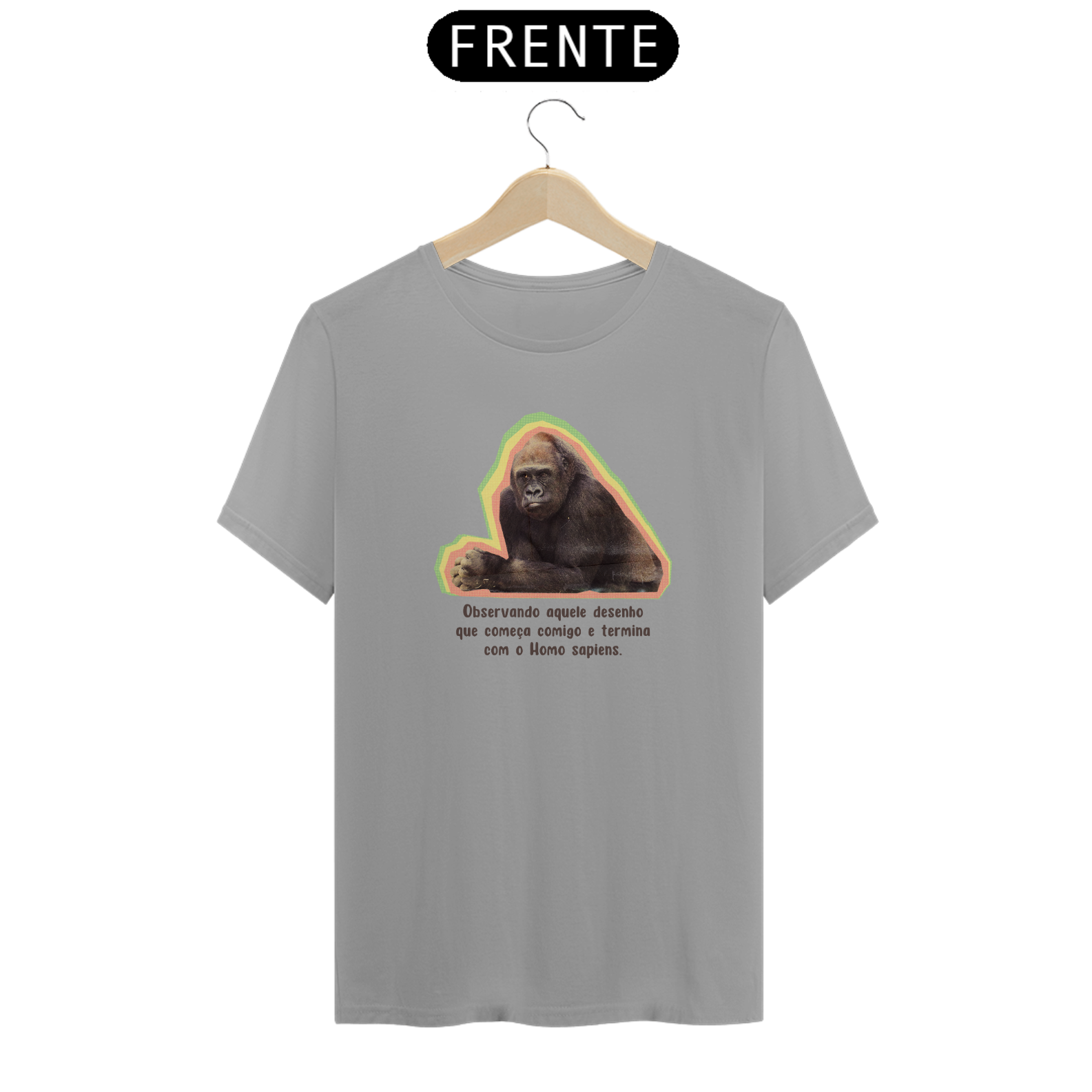 Esta estampa traz um macaco intrigado observando a clássica ilustração da "evolução humana". Com humor, provoca a ideia equivocada de que a evolução é uma linha reta e que o macaco foi "promovido" a Homo sapiens. É um lembrete divertido: evolução não é fila indiana, e o macaco nunca saiu de cena — ele só vive a própria história!