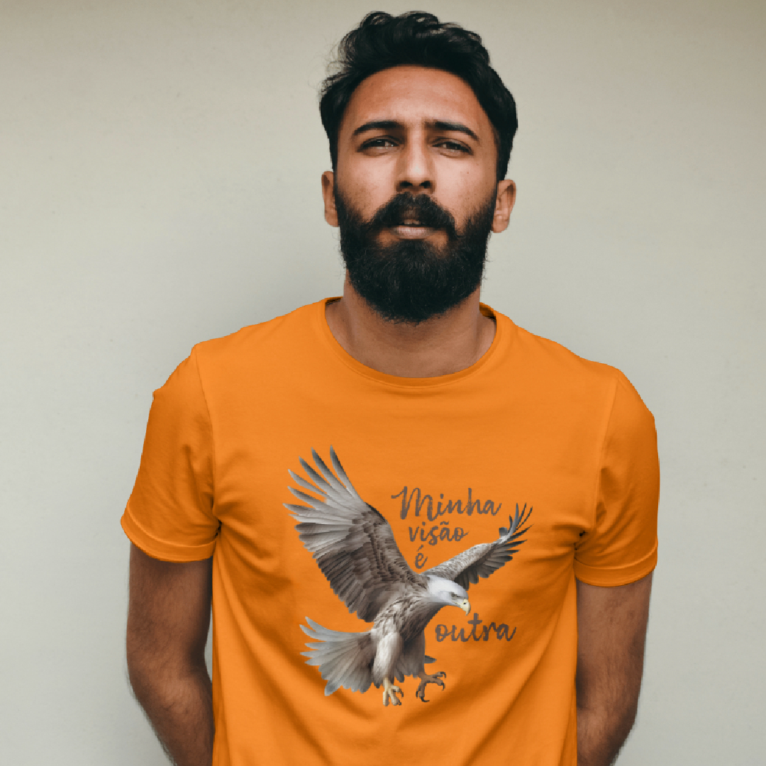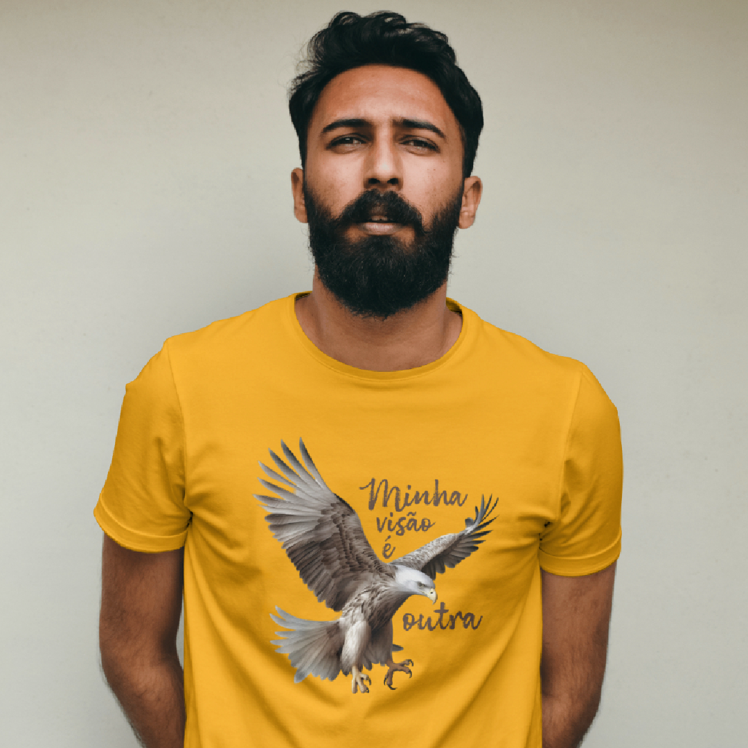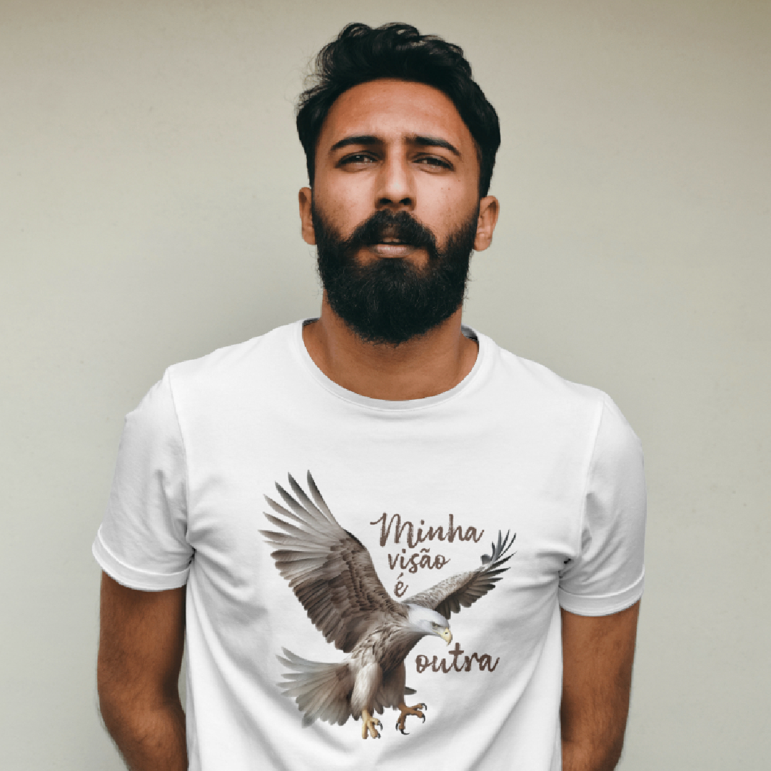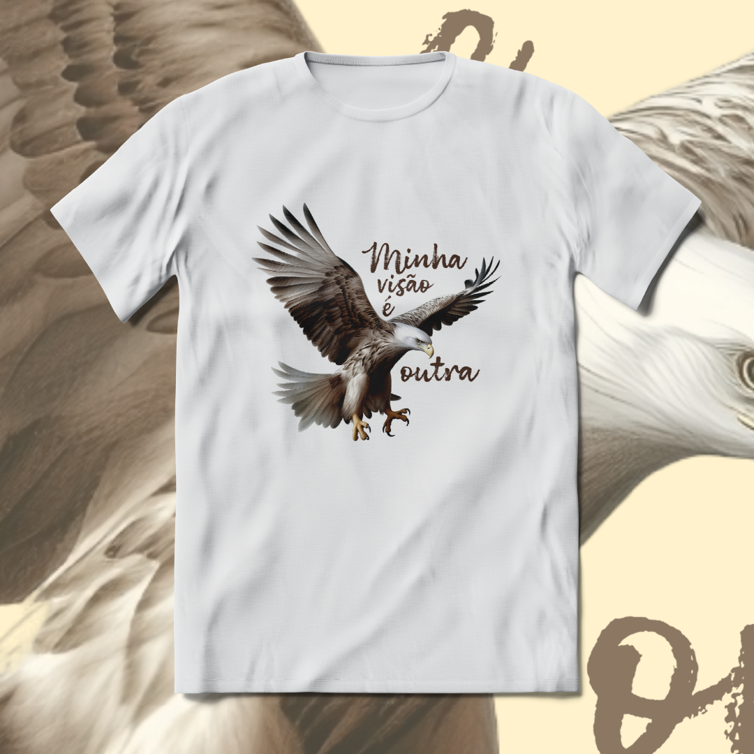 A estampa "Minha visão é outra" com a poderosa Águia simboliza clareza, foco e elevação espiritual. Como animal de poder, a Águia nos inspira a enxergar além do óbvio, a ter uma perspectiva mais ampla da vida. Alinhada à essência da marca ExpanSer, é um convite para voar alto, expandir horizontes e confiar na própria visão para alcançar novos patamares.