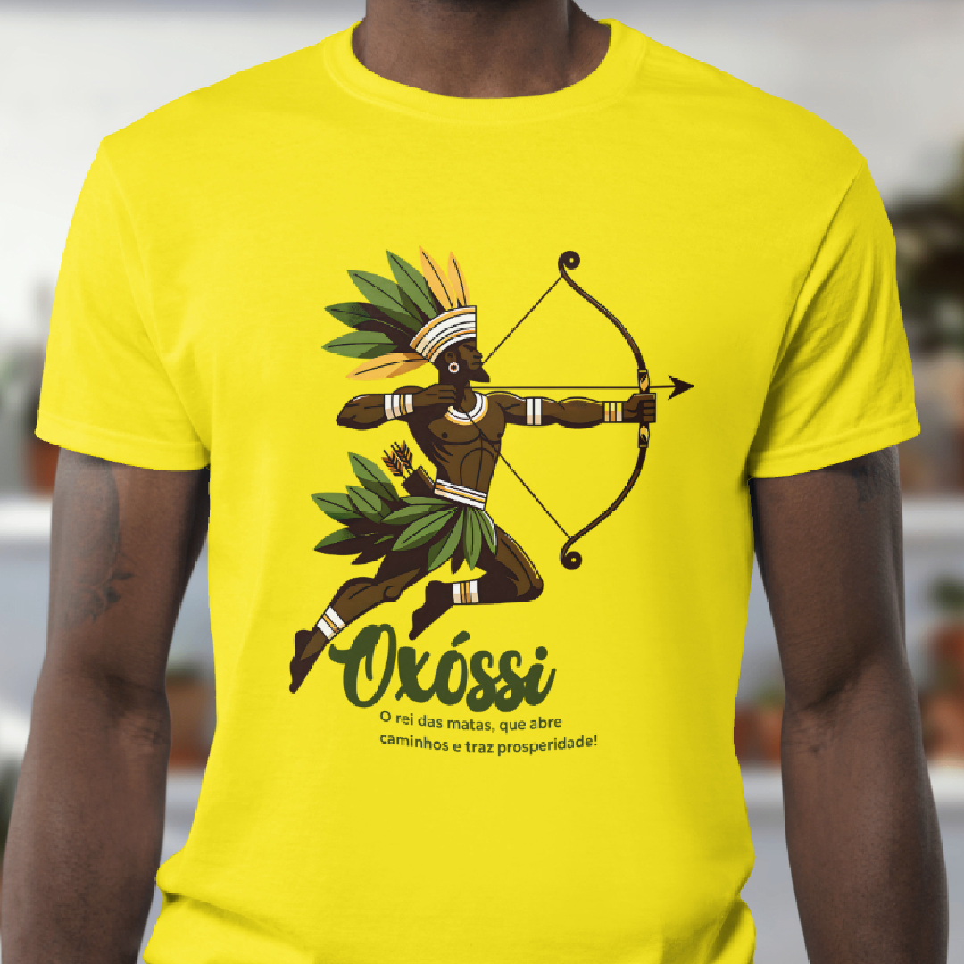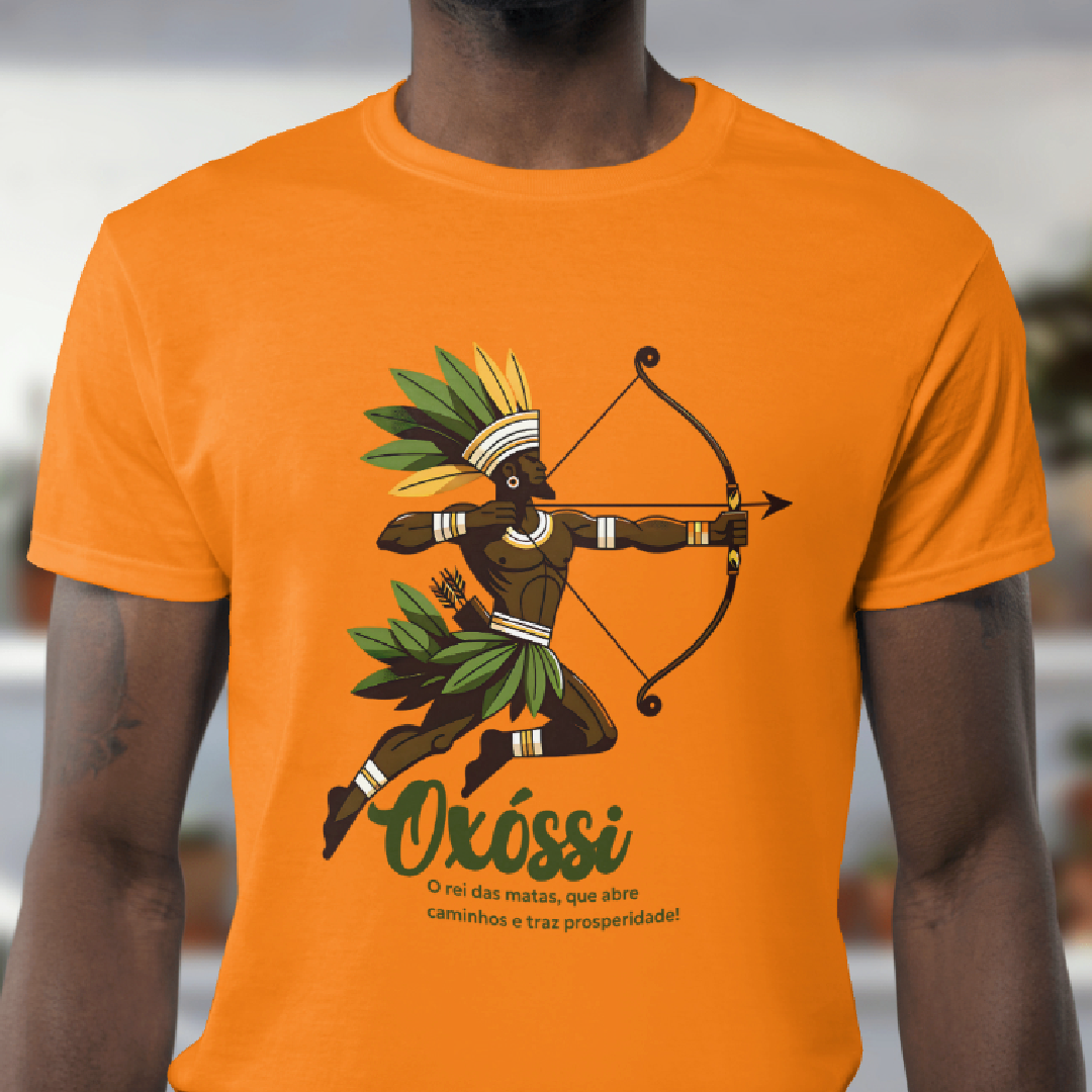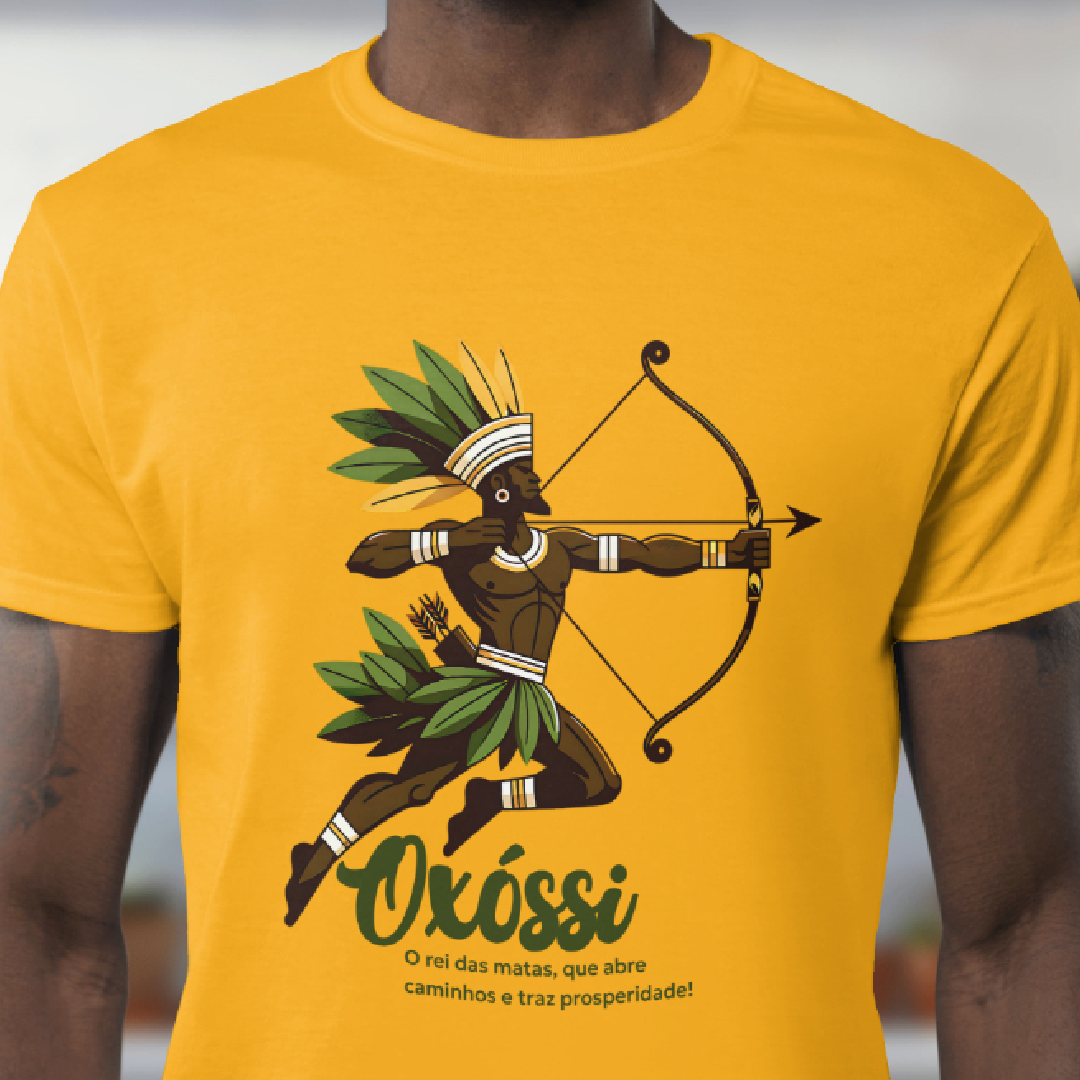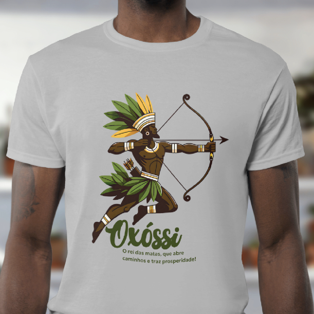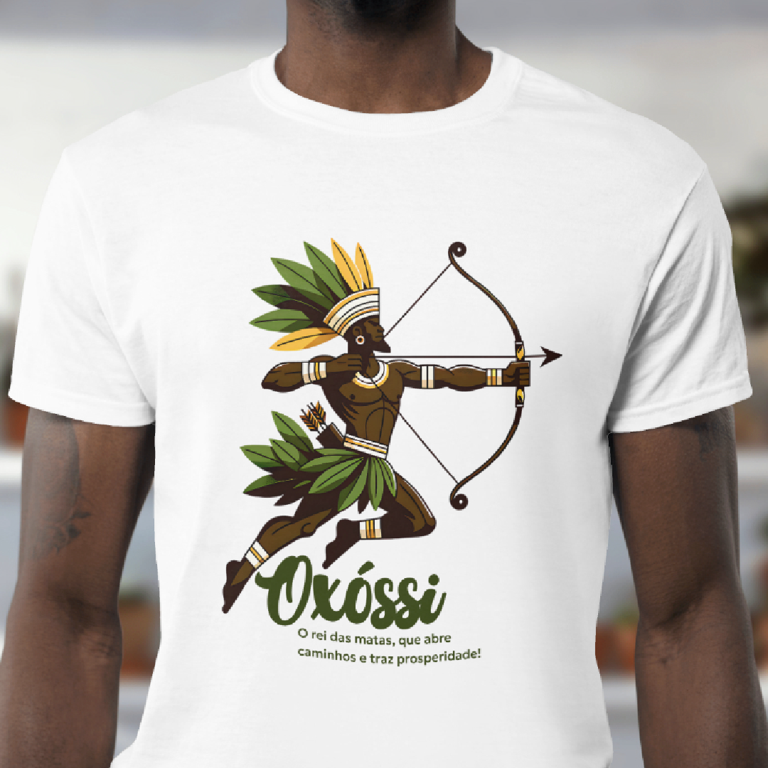 Oxóssi, o caçador de uma flecha só, é o guardião das florestas e da prosperidade. Com sabedoria e agilidade, ele desbrava caminhos, trazendo fartura, proteção e equilíbrio. Esta estampa conecta você à força da natureza e à energia vibrante desse poderoso Orixá. Avante, com Oxóssi ao seu lado!