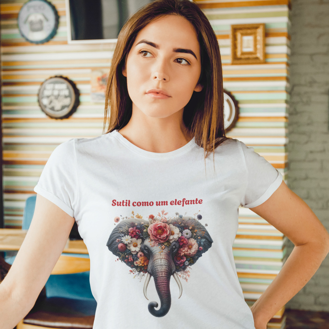Sutil como um elefante — pra quem chega chegando, com charme, intensidade e um toque de ironia. Essa estampa une força e delicadeza num só visual, perfeita pra quem não passa despercebido… e nem quer!